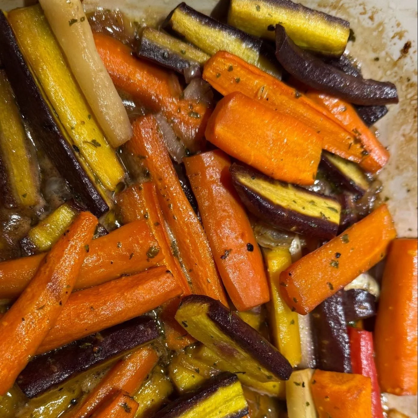 1 lb rainbow carrots, peeled and cut into 3" pieces, quartered lengthwise